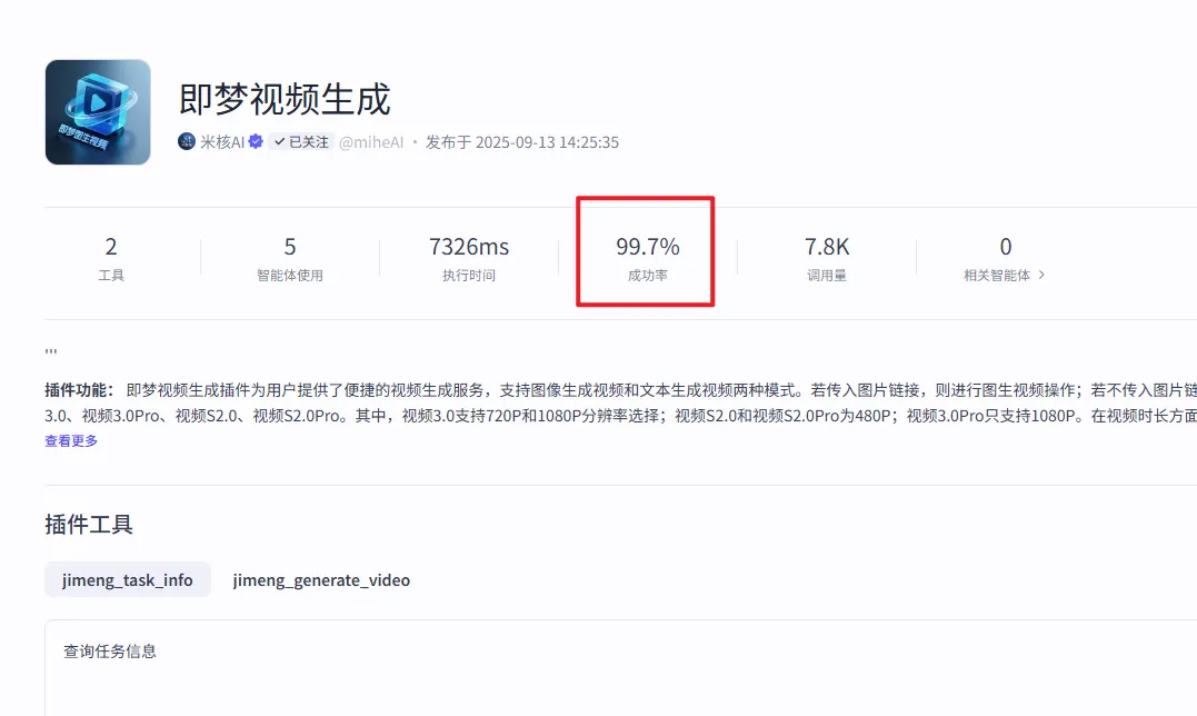我们的视频插件调用成功率99.7%!调用量7.8k!