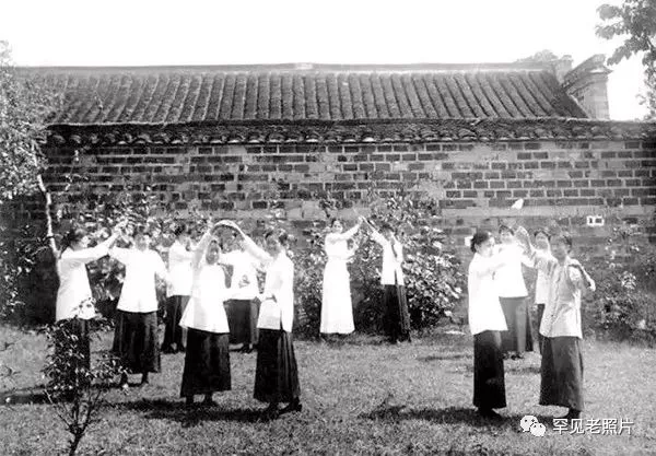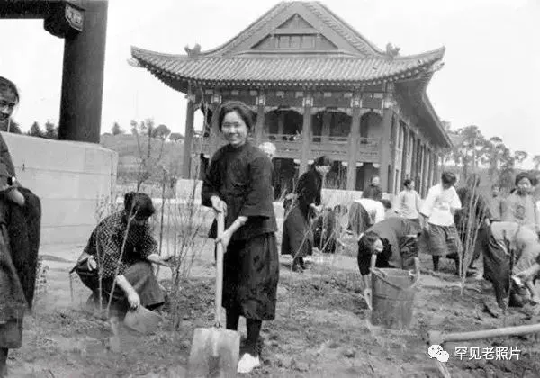 1923年,南京金陵女子大学,植树节上的大一新生。