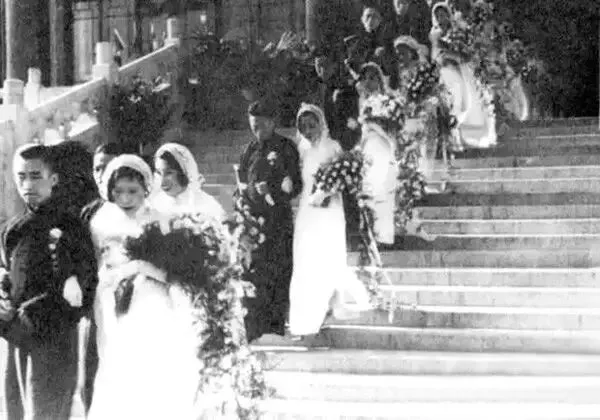 1947年,南京,一百多对新婚夫妇在励志社举办集体婚礼。