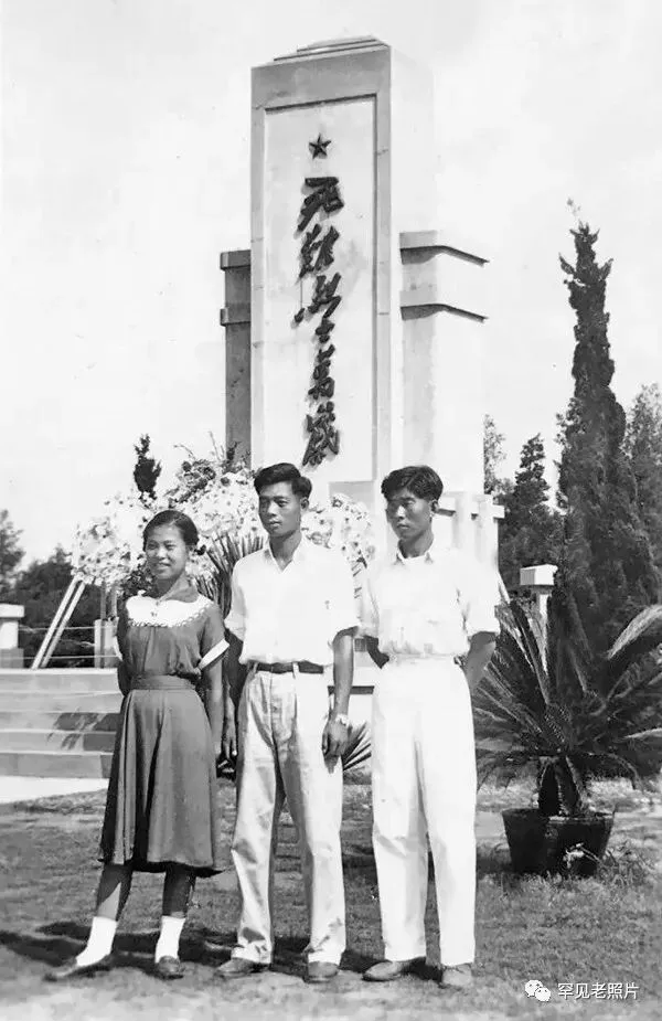 1957年8月11日,南京雨花台,三位年轻人的合影照。图片来源:7788收藏网。