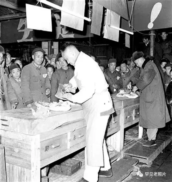 1965年,南京市民节日期间拿着猪肉票排队购买猪肉。晓庄/摄。