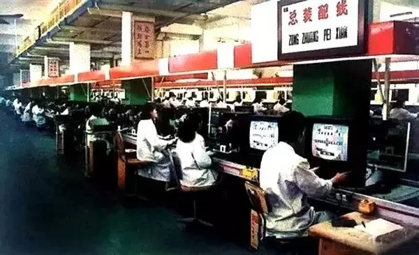 1997年,南京,熊猫电视机厂电视机总装车间。