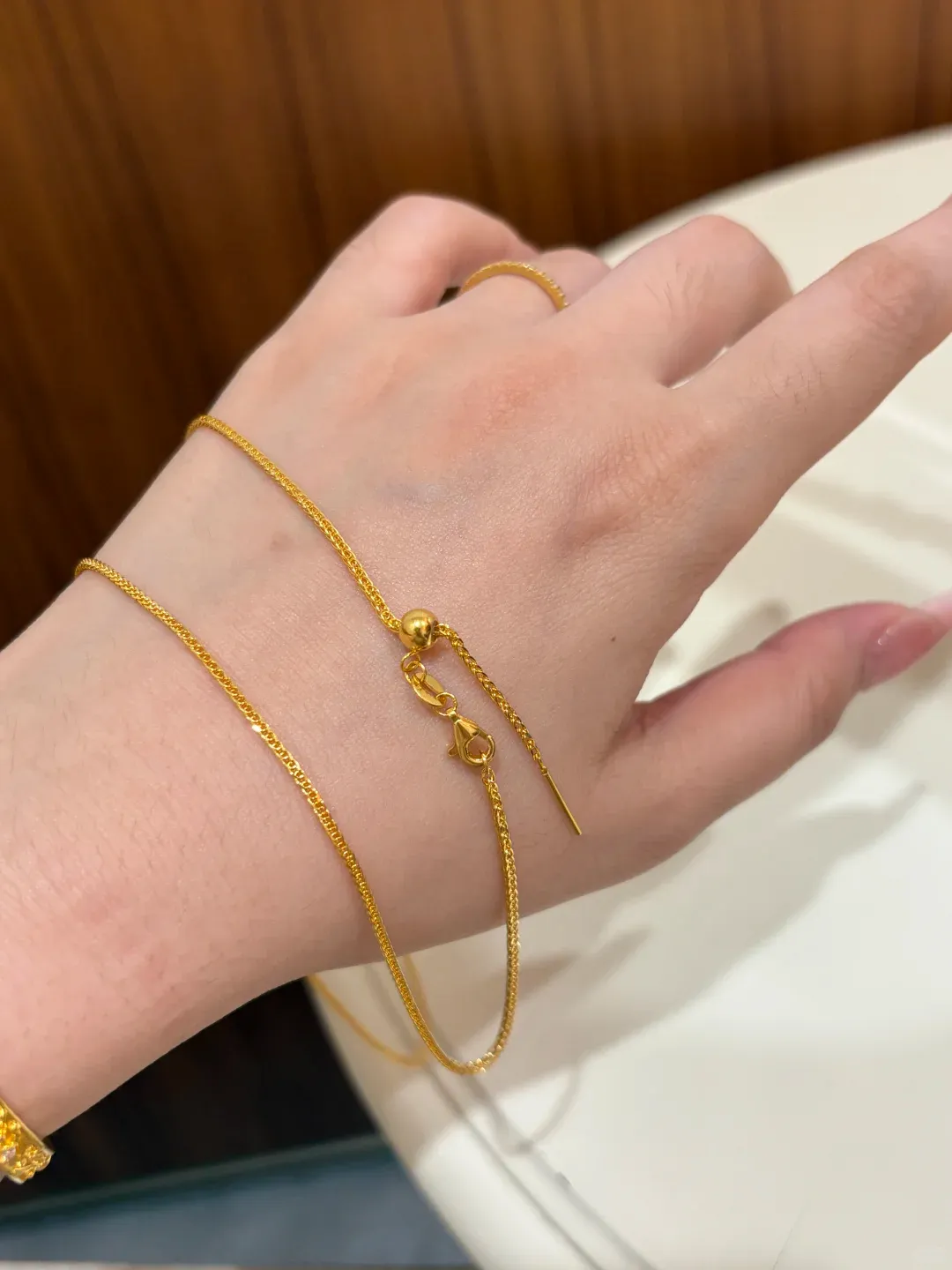 说到佩戴感受,真的是出乎我的意料。我原本以为黄金会不会太显眼,结果发现完全不会,反倒有种低调的精致感。我刚买回来那天就戴出去逛街了,路上有小姐姐还特意问我在哪里买的,说很特别。日常通勤穿衬衫或者简单T恤配它,超级加分,显得人很有精神。约会的时候我还试过和珍珠小吊坠叠戴,朋友说看起来很有层次感,就是那种慵懒又有气质的氛围。拍照的时候真的出片率爆高,尤其是阳光下,那种温柔的光泽感,怎么拍都很有质感。我有次出门太匆忙,直接戴着做事,回家才发现戴了一整天,完全没有勒痕,也没有那种闷闷的不适感,真的很适合懒人。