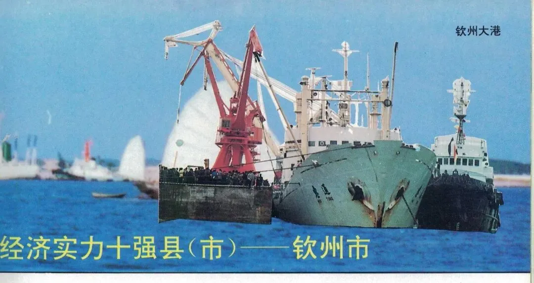 90年代钦州最大的主题,是告别“有海无港”的历史。1992年,在一片荒滩渔村上,钦州人民不等不靠,全民捐资,打响了建港第一炮。到1994年,第一艘万吨货轮靠泊,钦州港梦想成真。这座因港而兴的城市,从此踏上了通往“亿吨大港”的壮阔征程。