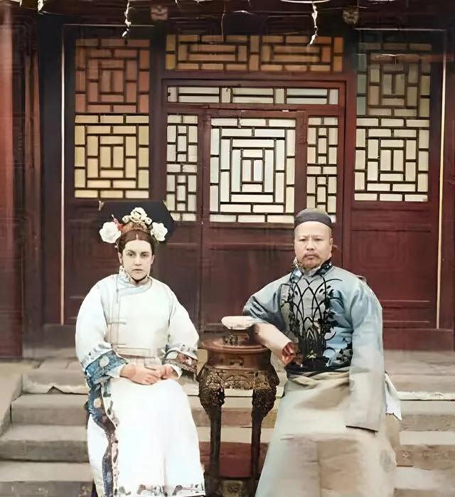 这对坐在宅门口的是跨国夫妻,男人穿着官样褂子,女人套上旗装头上插花,她的五官深,靠着方桌坐得很直,爸爸说,那时候也有人心向东方,衣裳一换就学我们的规矩。