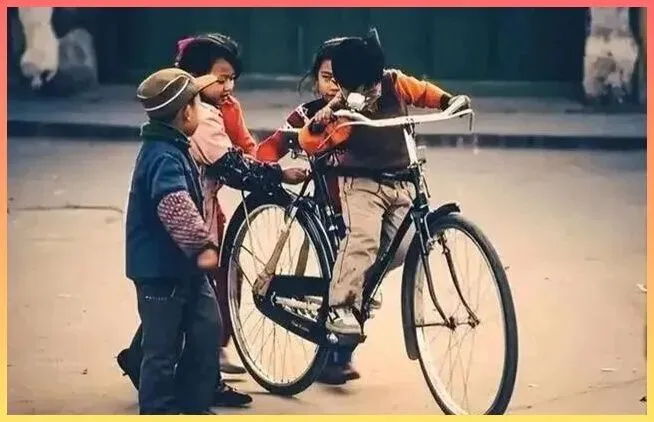 这.张图.绝对是无.数人的噩梦与骄傲。当年的28大杠,.对于小.小的我们来说简直就是庞.然大物。够不着车.座.怎么办,掏裆骑.! 这姿势虽然别扭,.但当年谁要是学.会了这一招,那在胡同里绝对是走.路带风的孩子王。你当年学车的时候.,膝盖.磕破过.几次?