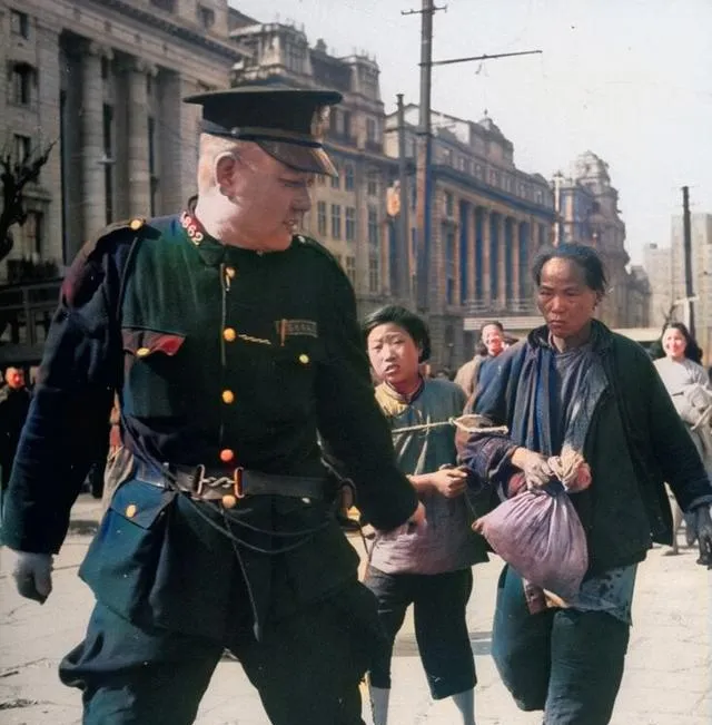 这个穿制服叼烟卷的,是街面上什么都管的警察,手里亮着大扇子,转身就能把人拎走,谁也不敢吱声,路边看热闹的越多,挨打的人就越怕。