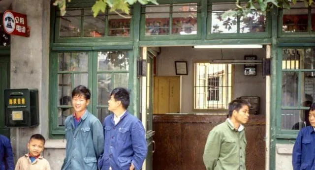 图中绿色小匣子叫邮政绿箱,屋檐上挂着“公用电话”,要打就先排号,写好号码交给值班员,屋里挂钟滴答走,等轮到你扬声说喂,信件从窗口递出去,盖章的啪嗒一声脆。