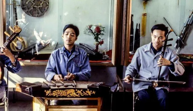 图中这阵子声儿叫试音,二胡、扬琴、琵琶一字排开,玻璃橱窗里摆着筝和笛,师傅合上眼拉一段,弓毛轻擦,音儿顺着柜台往外流,妈妈说,学这个得耐心,急不得。