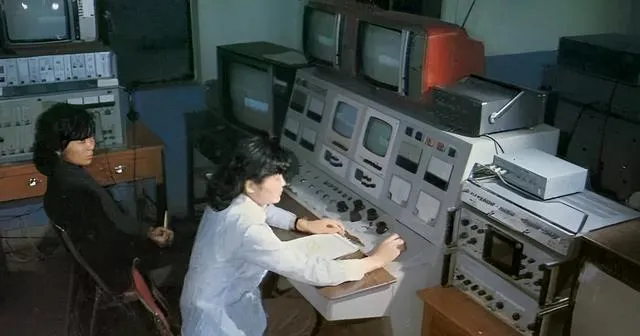 圆形水池里这一簇叫喷泉,白水柱一根根冒起来,边上那栋条纹立面是广播电视大楼,楼顶铁塔像一捆天线,转台节目开始时,商场门口的收音机一开就是整条街都能听见,叔叔说快看表,四点半了,二路车要堵,赶紧回去,不然菜市场就空了,现在手机一点,新闻随手刷,那会儿就靠喇叭和报架子。