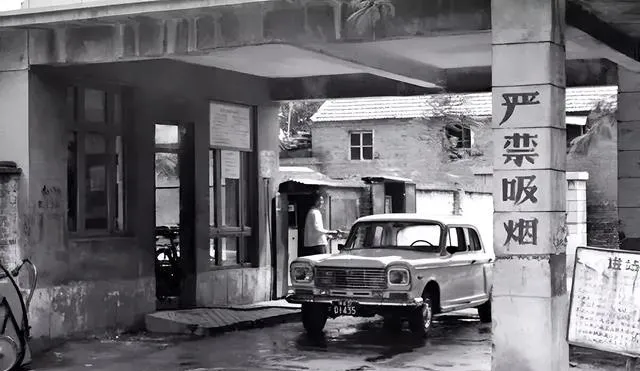 这辆上海牌轿车靠在油机旁,加油员戴着袖套,柱子上写着严禁吸烟四个大字,爷爷笑说那会儿汽油味儿都香,能开上小汽车的可稀罕了。