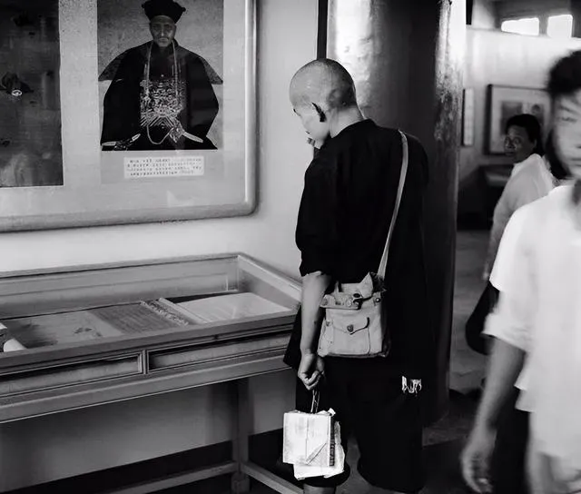 这位外地来的客人背着布挎包,身子前倾看展柜里头的古籍,玻璃上反着光,脚下挪半步就换一个角度,读不懂也要看个仔细,这是尊重。