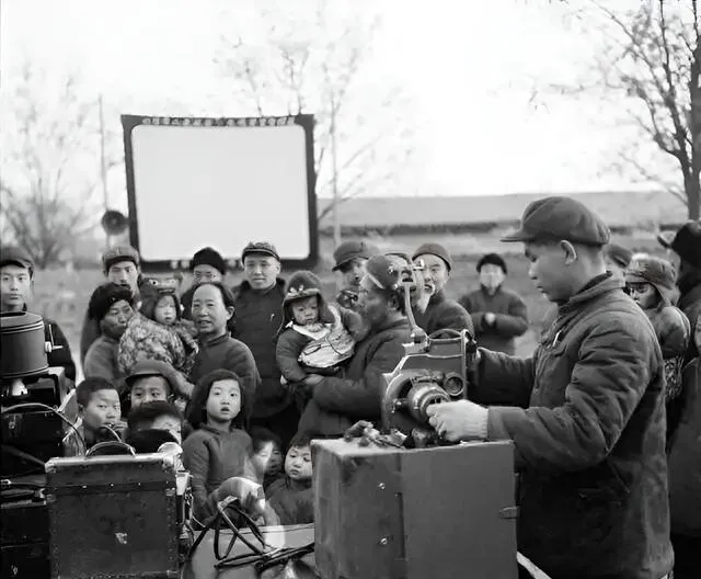 这个放映机一摆,白幕一挂,村口立马热闹,孩子趴在父亲肩上问今天演啥,放映员咳一声说先调一调机器,等虫子绕着灯光打圈就开场了。