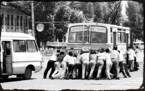 抛锚的108路,齐心协力推车的热心乘客!