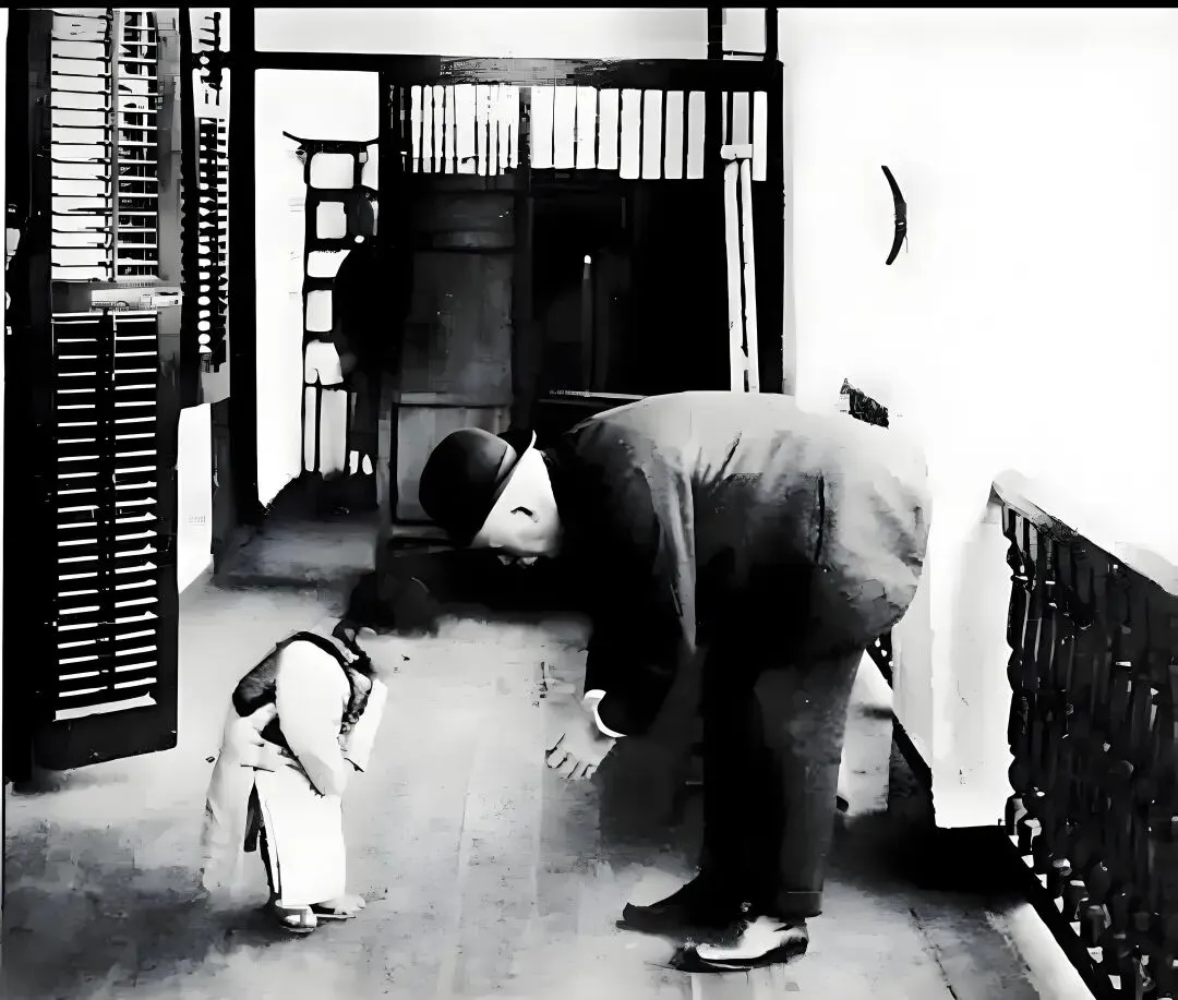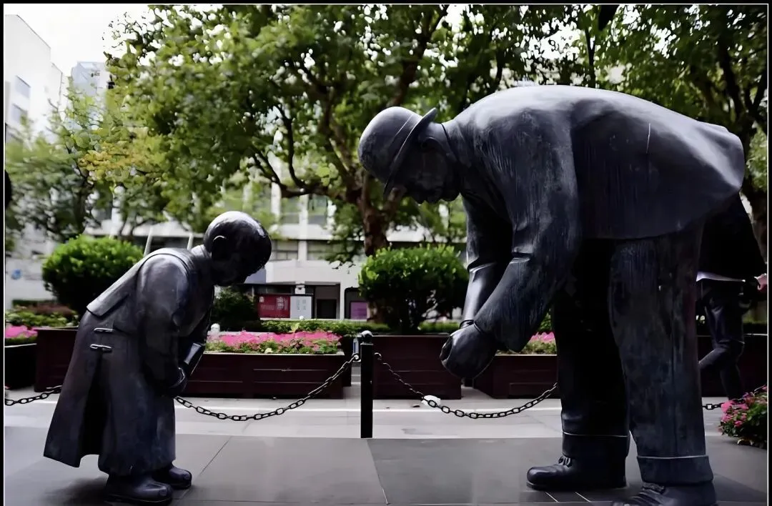 这一幕让梅藤更心头一暖。他放下手中的病历本,郑重地弯下腰,以同样标准的90度鞠躬回礼。长衫的衣摆随动作轻轻摆动,东西方的尊重在这一刻完成了最美的交汇。随行的摄影师迅速按下快门,将这帧医患相知相敬的画面永久定格。照片中,一老一小躬身相对,没有语言的隔阂,没有身份的落差,唯有纯粹的尊重与善意在空气中流淌。这张照片后来成为中国医学史上的经典,浙大二院更是将其化作铜雕,矗立在门诊楼前——青铜的质感沉淀了百年岁月,梅藤更的儒雅与孩童的纯真被永久凝固,成为医患平等的精神图腾,提醒着每一位医者初心,也温暖着每一位患者的心灵。