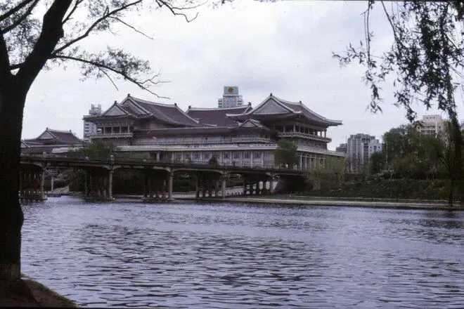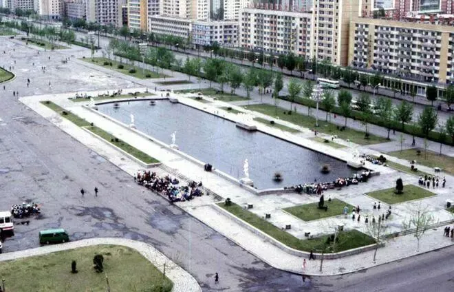1985年,朝鲜首都平壤公园里的俊男美女,看样子,是来照结婚照的新郎和新娘。