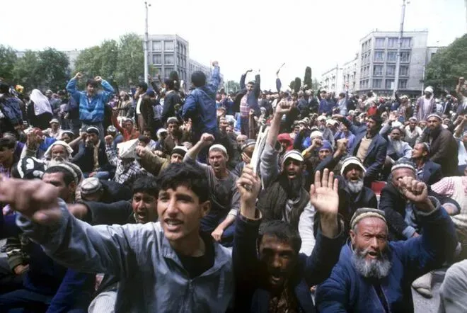 1990年2月,塔吉克斯坦首都杜尚别街头挤满了抗议者,反抗苏联的统治。当年随着东欧剧变,苏联的各个加盟共和国也纷纷效仿东欧诸国,意图脱离苏联而独立。