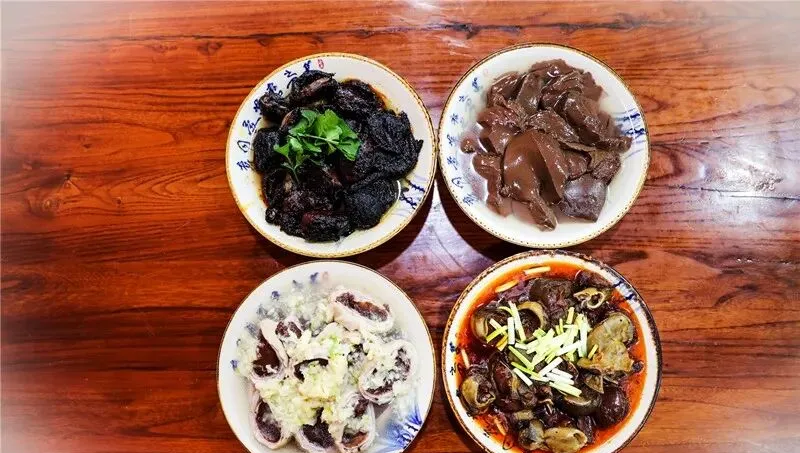 这几碗红白相间的叫内黄灌肠,血旺透亮,蒜泥一浇,油辣子一勺,端起来先看色再抿一口,舌尖微烫,是个能把人拽回巷口的小吃,爸爸敲碗说“再来两张饼”,现在饭店也能点到,可还是街边摊那股子热气最带劲。