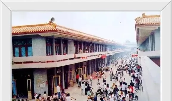 图中这片两层回廊叫内黄商业街,铺面一间挨一间,栏杆上趴满看热闹的孩子,卖衣服的高音喇叭一天不带停,这里最好逛的是小玩意儿摊,铁皮陀螺一抖,嗡一声就跑远了,现在商场空调一开挺舒服,可这份热闹劲儿,真是难复刻。
