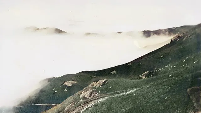 这条贴着草坡的线叫石阶栈道,边上就是云雾,走到拐弯处风会突然紧一紧,像有人从背后推你一把,我第一次上山就是走的这种路,鞋跟蹭出白印,回到家才发现腿在抖。