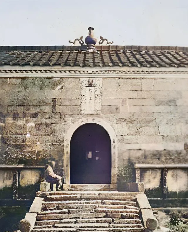 这张从黑门洞里望出去的,框住的坐姿像一幅剪影,手里的烟袋杆细长,火星一亮一灭,老照片没有声音,可我总能听见风从门洞里穿过去,像在吹口琴。