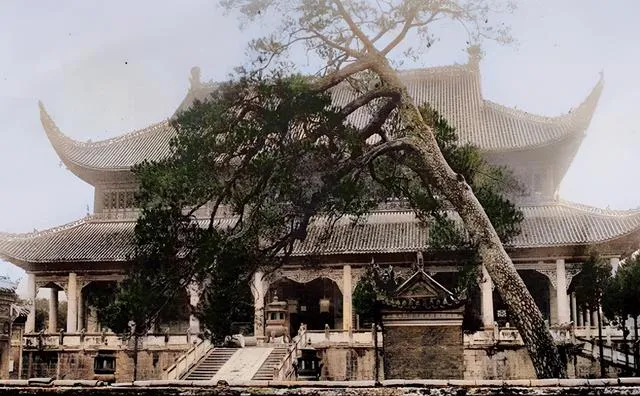这座飞檐高挑的是南岳主殿,前头那棵斜着长的柏树最抢眼,枝干虬劲,像护着殿门不让风雨直冲进来,爷爷说,树活一座庙就活一半,现在去看,树还在,心里就踏实了。