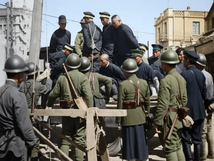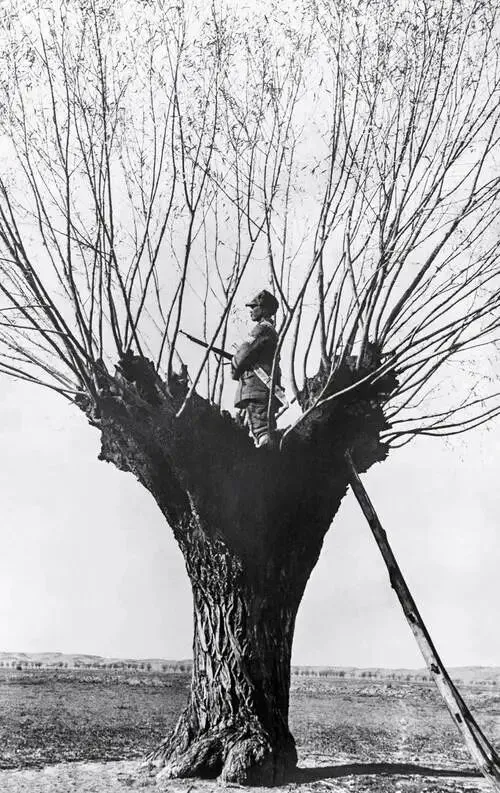 这一组民国老照片,像是从时光深处打捞起的碎片,每一张都带着岁月磨出的柔光,将那个新旧交织、既有市井烟火又有理想锋芒的年代,悄悄铺展在眼前。这张照片展示的是上海公共租界附近的一座钢制交通指挥塔。塔上有一名中国机枪手,他选择将这座交通塔作为作战位置。从画面可见,交通塔带有金属梯子、信号灯等设施,照片下方文字说明“*There is obviously no retreat from a position like this*(显然,在这样的位置上没有退路)”,结合历史背景,可推测:抗战时期,中国士兵为抵御侵略,利用城市中的交通设施构建临时战斗据点;尽管交通塔位置突出、缺乏撤退空间,士兵仍坚守于此。1910年代的街头,一位黄包车车夫正候在那里等活计。他身上的粗布衣裳带着常年劳作磨出的痕迹。一只手叉在腰间,另一只手随意捏着支烟斗。他脑袋微扬,眼神里浸着股漫不经心的“不屑”,仿佛对周遭的一切都带点疏离的漠然,又像是在谋生的街头,用这副吊儿郎当的模样,悄悄掩住生活的疲惫。20世纪40年代的上海街头,一条马路上排起了长长的队伍,全是等着搭乘有轨电车的百姓,黑压压的人群将马路占去大半,把“人潮涌动”衬得格外真切。照片中的男子身着长衫,头戴传统瓜皮帽,正专注地手持老式电话机的听筒,似在认真通话。在电话技术尚属“新式事物”的年代,能在这样的环境中操作通讯设备,他大概率属于当时从事文职或技术类工作的“白领”群体,是近代社会里接触先进文明与技术的一份子这张摄于1930年的老照片,川滇交界的深山腹地,三位男子的装扮与姿态,恍若从古代战场“穿越”而来。中间背箭囊持弓箭的是小头目,两侧一人着藤甲握梭镖、一人举盾牌,他们是奴隶主或土司的私人武装,他们的装扮与武器,成了奴隶主维系残酷统治、镇压奴隶的工具。彼时的大凉山,被深山牢牢禁锢,社会仍深陷奴隶制的泥潭。奴隶主阶层垄断了土地与资源,将奴隶视作可以随意处置的“财产”——残酷的物物交换司空见惯,一名女奴隶竟只能换一只公鸡,五六张兽皮才换来四五尺布,奴隶们的尊严与生存权被彻底剥夺,终日在剥削与压迫下挣扎,活得如同牲畜。这张老照片,定格了1931年九一八事变后沈阳街头的残酷一幕。画面中,几名沈阳警察身陷敌手——他们曾身着制服,肩负守护城市秩序的职责,此刻却在侵略者的暴力下沦为俘虏。周围,头戴钢盔、携带武器的日本侵略者形成包围之势:军装透着肃杀之气,武器的冰冷质感仿佛穿透画面;而被围在中间的警察,制服虽已褶皱、甚至带着破损痕迹,却仍能辨出属于当时沈阳警察的制式。1935年的长城之上,砖石铺就的城垣步道间,竟“安”着一处满满当当的摊位。头戴厚实棉帽的男子斜叼着烟袋,气定神闲地半坐于摊旁,目光悠悠扫过往来人影。彼时的长城,墙体并非规整簇新的模样,砖石塌损、缝隙蒙着尘沙,却丝毫没减了人气——三三两两的行人沿步道走来,瞧衣着打扮,多是身着长衫的文人,为古老城垣添了几分鲜活气。1941年的陕甘宁边区村口,一棵老杨树虬劲的树干撑起疏朗枝桠,年轻哨兵身着军装,军帽下的脸庞透着坚毅,他笔挺站在被修剪过的宽阔树杈间,机警的目光像鹰隼般锁向远方黄土漫漶的原野。树旁斜倚着一架木梯,那是他登上这“天然瞭望塔”的工具。1938年的江西修水乡间,日军队服像块肮脏补丁,贴在破败农舍的背景前。一头本应在田垄勤恳耕作的棕色水牛,被粗暴拽到院坝。三名日军如耍玩物般叠趴在牛背,日军眼睛眯成缝,嘴角咧开露出烟渍牙齿,似在炫耀“战利品”;周围七八个日本兵围成圈,有的叉腰、有的抱臂,土黄色军裤裤脚卷起,露出沾泥军靴。他们望着牛背同伴,脸上挂着残忍笑意,眼神里满是对“香喷噴牛肉”的期待——对侵略者而言,抢来的水牛只是消遣玩物与口粮;可对农户来说,这耕牛是春种秋收的依靠、一家人活命的命根,被夺走便意味着生存根基彻底碎裂。彼时日军在华夏大地四处“扫荡”,闯无数农家抢粮、夺畜、烧屋,把百姓生活砸得粉碎,只留他们肆意的笑,和无数家庭流离失所的哭嚎,如乡间呜咽的风,诉说着苦难。