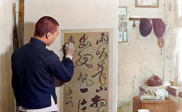 这位正给书法上托心,浆糊抹得匀,纸边拉得直,墙上挂着日历和帽子,屋子里有股浆糊和糨糊混的淡味,我外公说,画好不如裱好,才挂得住面子。