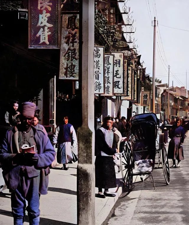 这个街口黄包车靠在柱子旁,伙计抻着腰等客,铺子上方一溜大字招牌,药铺、银楼、皮货排着队,小时候我跟着大人逛过旧街市,最爱看掌柜在算盘上噼里啪啦,算盘珠子一响,仿佛把一日的烟火都串起来了,现在扫个码,静得只剩滴一声。