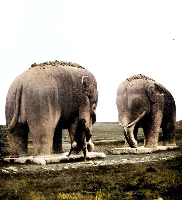 这俩石象敦敦实实站路旁,背上长苔,巨大的耳朵垂到腮边,游客走到脚旁像小豆子,妈妈说古人的气派不在声张,在这份留得住的沉默上,现在景区修得干净,摸一把也怕脏了手,还是愿意远远看一眼。