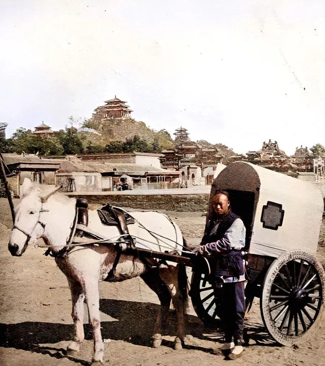 这个小车篷顶像斗笠,驴子白得发亮,车把上拴了个铜铃,叮地一声脆,车主人手搭着辕,等慌了就甩鞭子,奶奶说那时候进城做买卖多靠这种代步,现在地铁一站接一站,路程缩短了,路感却薄了。