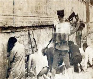 图中士兵手里的细长家伙就是鞭,藤条或牛皮,抽在人身上先是“啪”的脆响,紧接着血珠子一颗颗往外冒,爷爷说,挨鞭子的人两手抱头蹲着,心里只祈祷管事的快点报数,别多抽一记,过去讲究以痛示警,现在讲究以法纠偏。