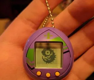 这个小蛋叫电子宠物,紫壳绿纹,屏幕里一只像笑又像哭的脸,按键三粒,指尖一戳就滴滴响,表弟拿着不肯放饭碗都忘了端,妈妈轻轻一敲桌子,说先喂你自己,再喂它。