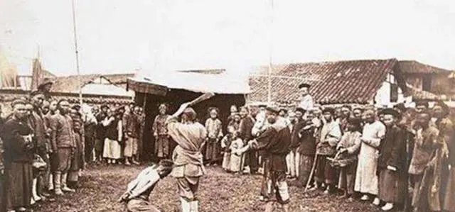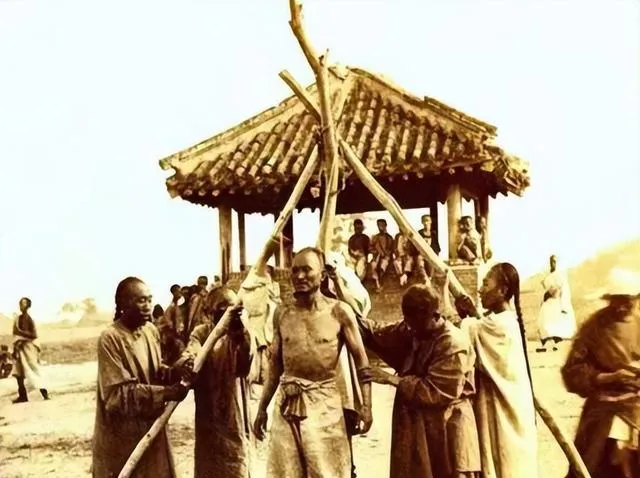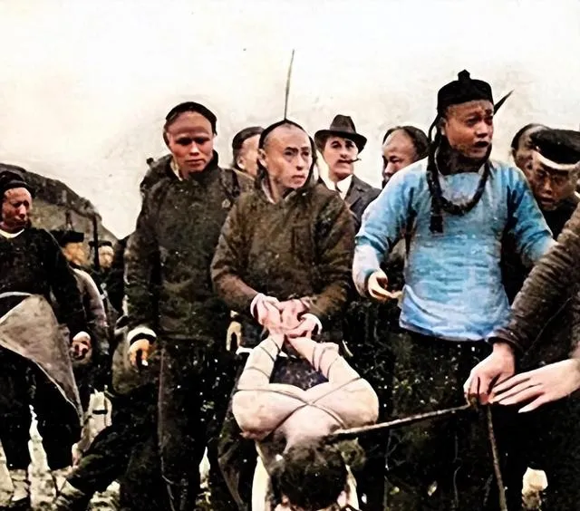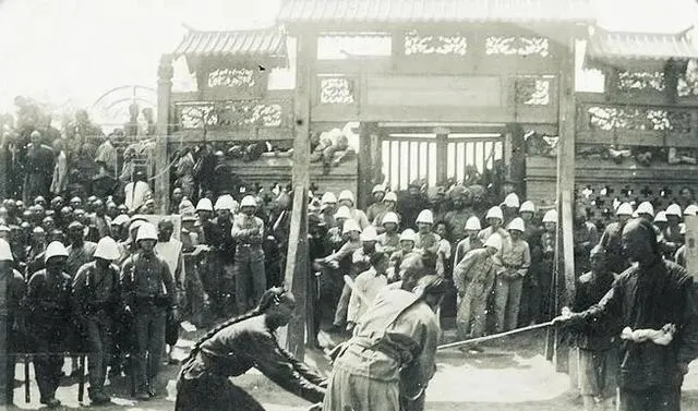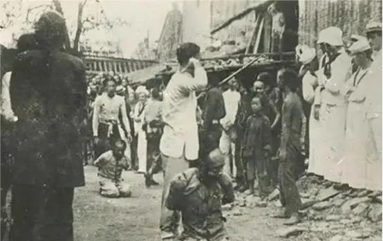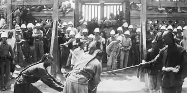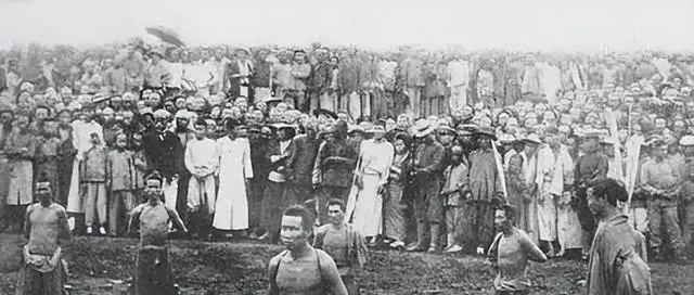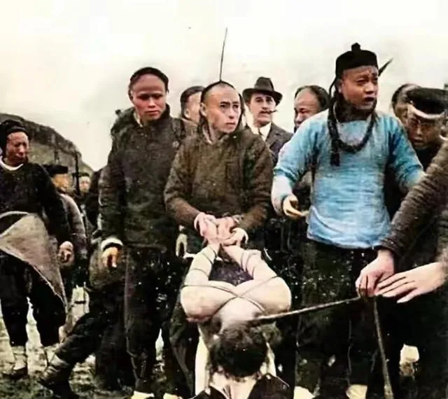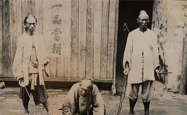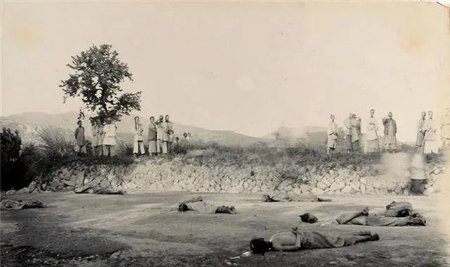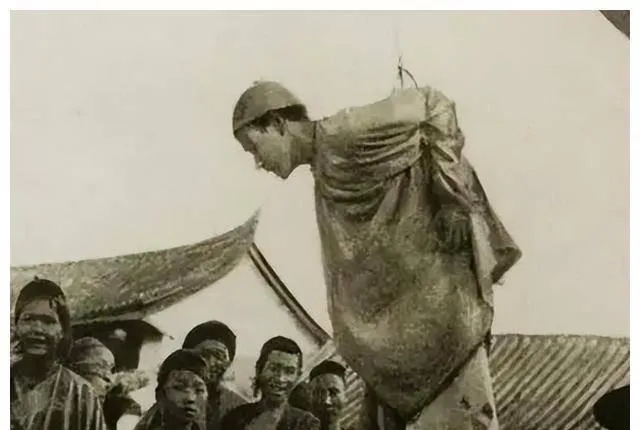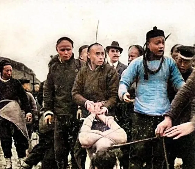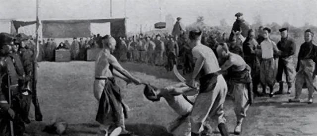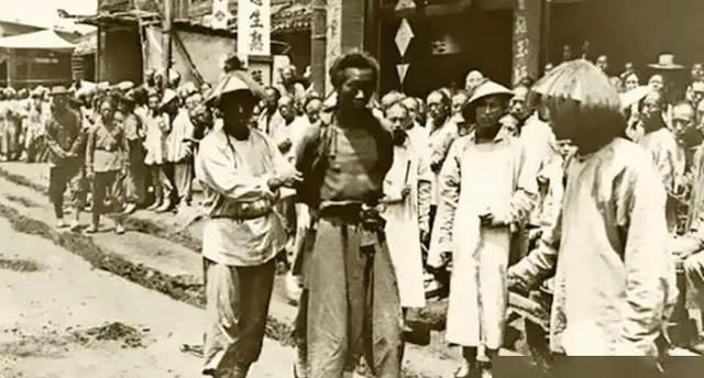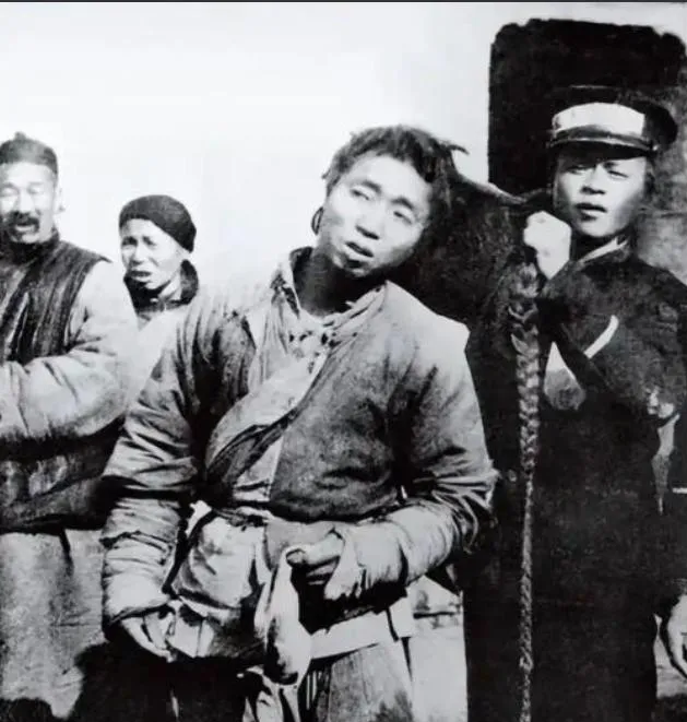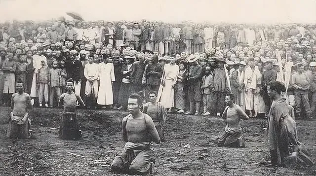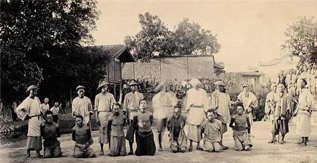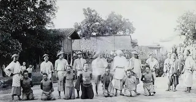 清朝刑场老照片:刽子手瘦弱不堪,犯人面露凶光,像狗一样被牵着。