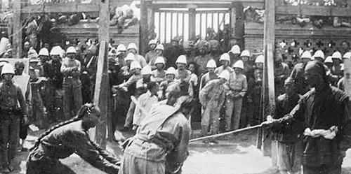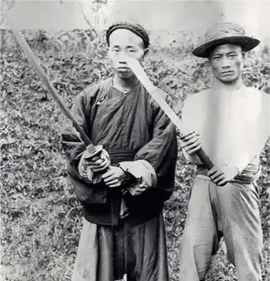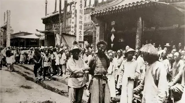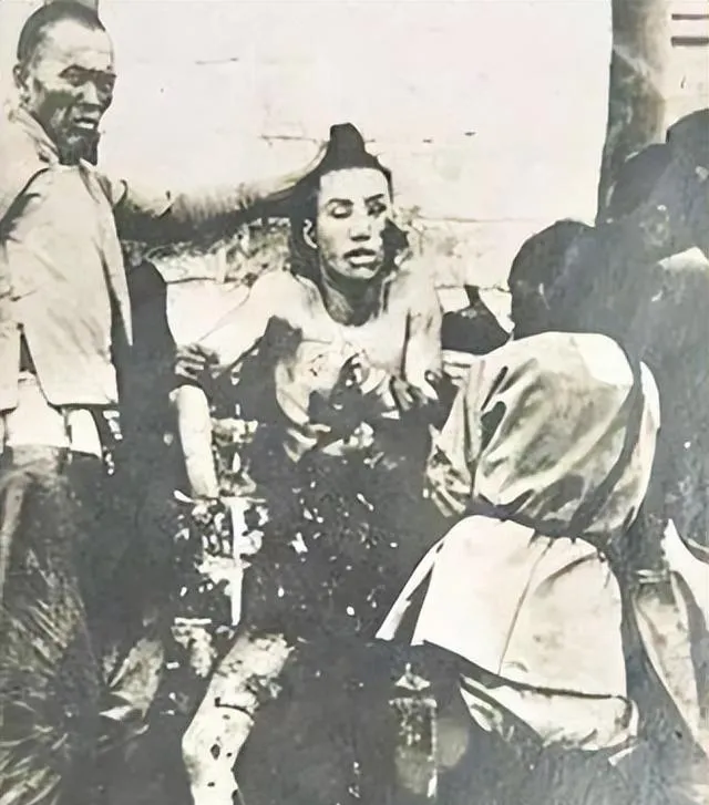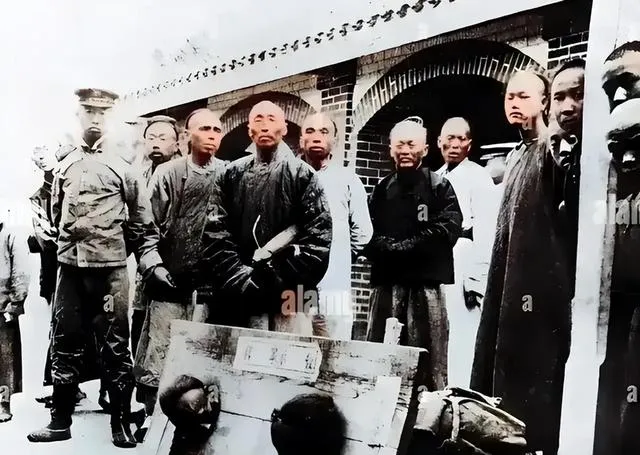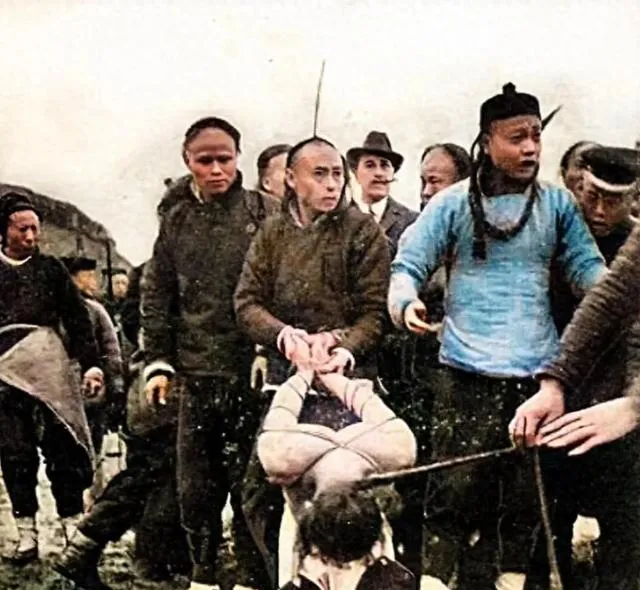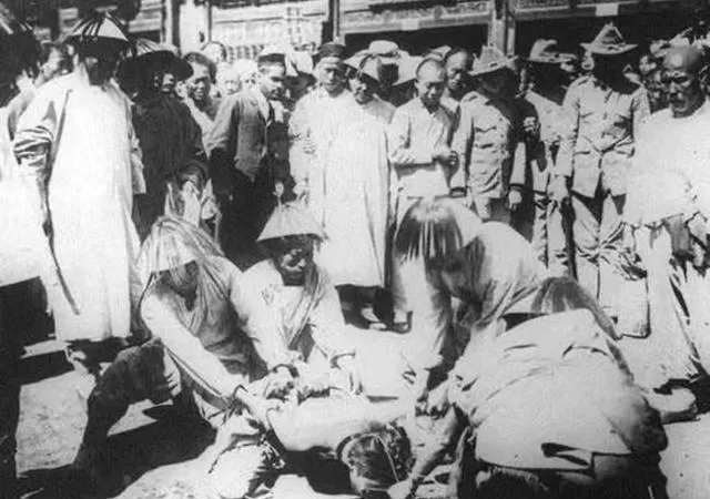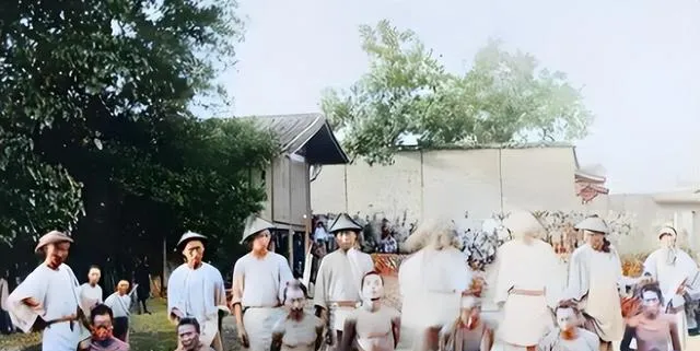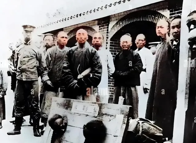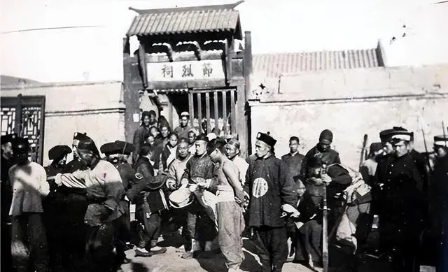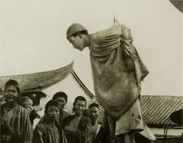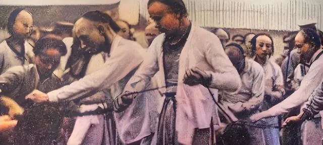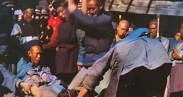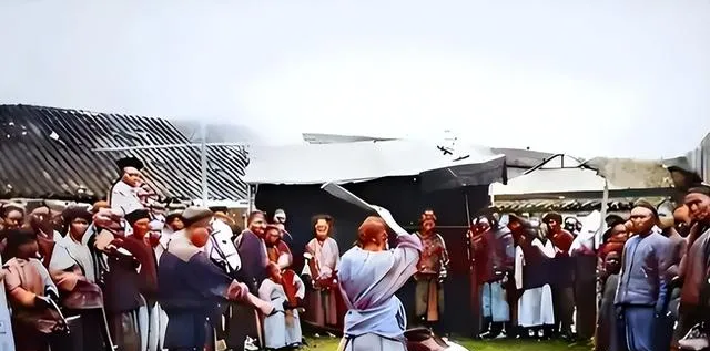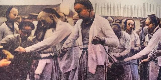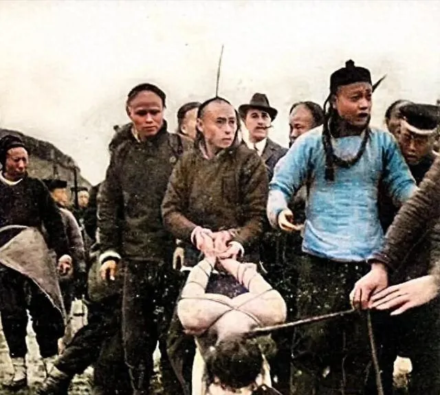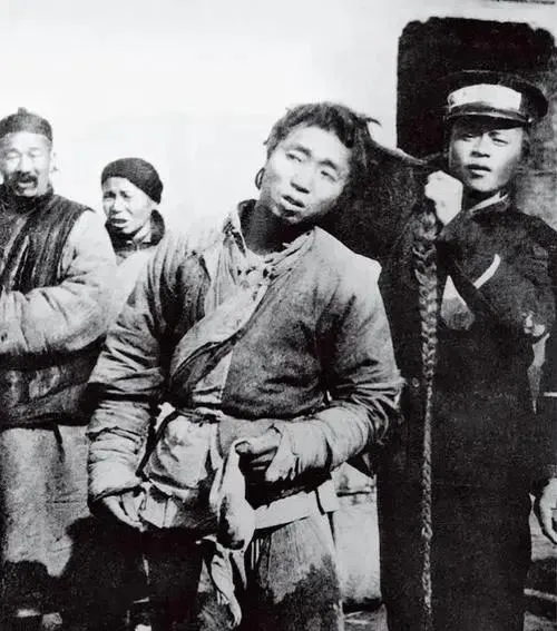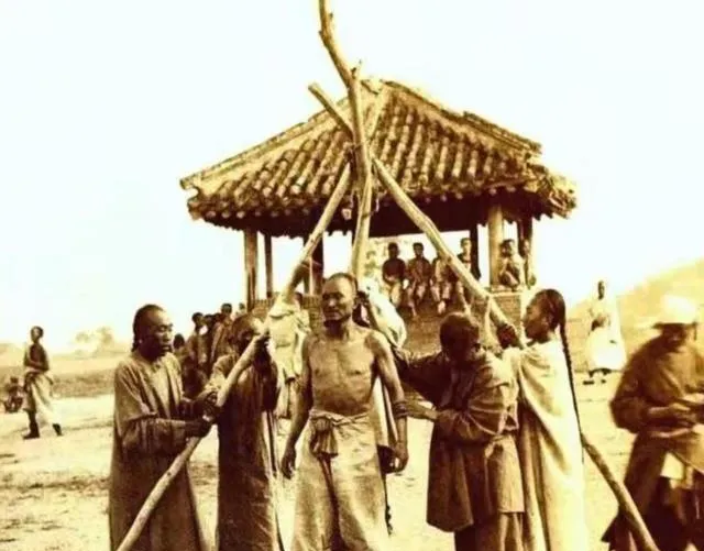 清朝刑场老照片:刽子手瘦弱不堪,犯人面露凶光,像狗一样被牵着。