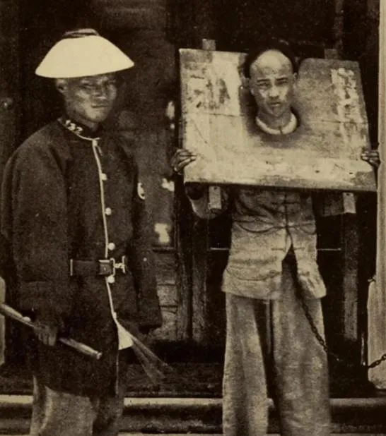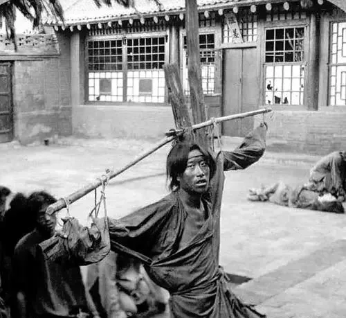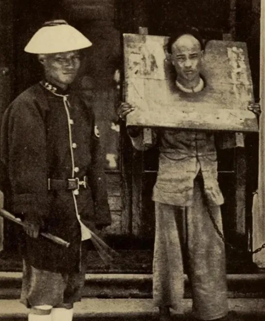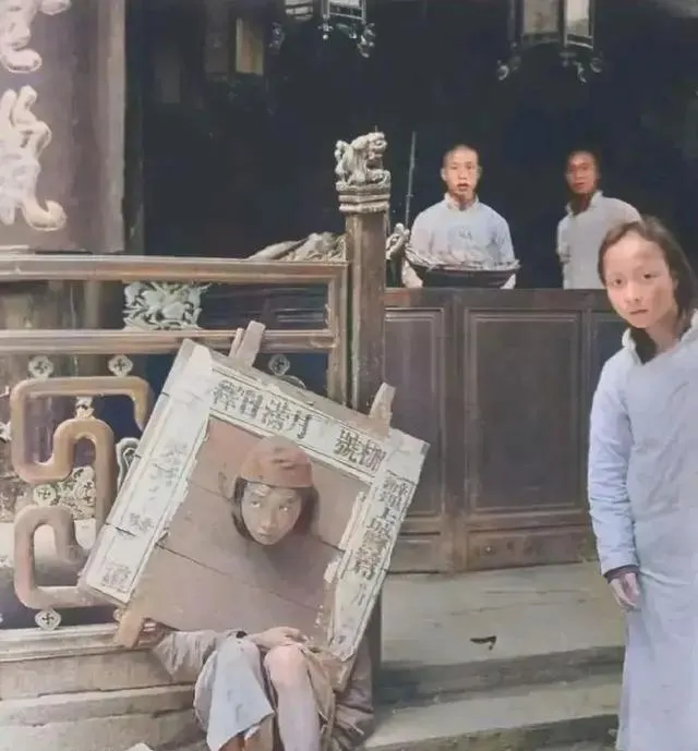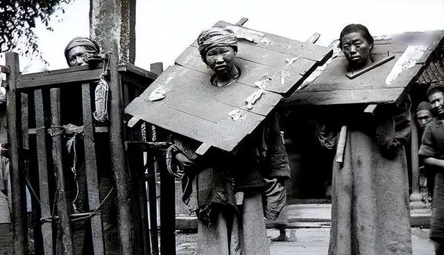 这个木头圈叫沉枷,厚板开孔,上下一扣,脖子和手一起锁住,走一步咯嘣一响,板沿蹭着锁骨,疼得人直吸凉气,枷面上刷白字,写着罪由和姓名,晒上三日五日,太阳把汗腥晒成了霉味,街口的铺家伙把湿抹布一甩,抹去门前灰,谁都当作没看见,可脚步还是会慢半拍。