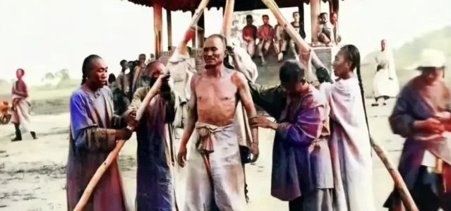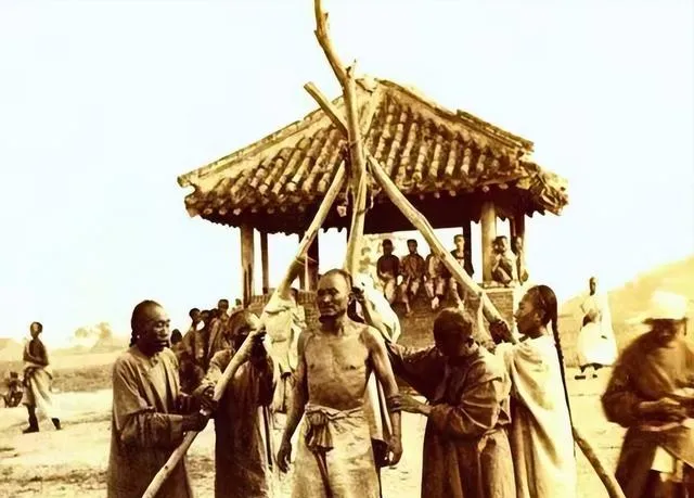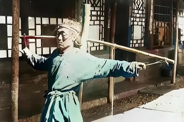 图里最扎眼的不是刀,是这根粗麻绳叫夹颈绳,麻股拧得死紧,末端打着硬结,刽子手一拽,犯人的肩就往下一沉,脚下打飘,像狗一样被牵着走,爷爷曾说,绳子不是随手找的,得先浸盐水晾干,这样不易断也不易滑,旧城的早市边上,时不时就能瞧见官差携着枷板和绳具,谁被套住,连回头的余地都没了。