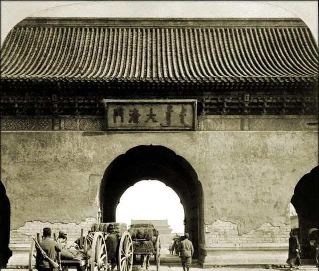 这个门洞宽,门匾写着“大清门”,车轮是木辐,马屁股一甩一甩,墙皮大块掉了,露出里层灰白,门外头是闹,门里头是更深的一层城。以前进出这道门得看差事,现在过城门是拍照打卡,门还在,意义换了。