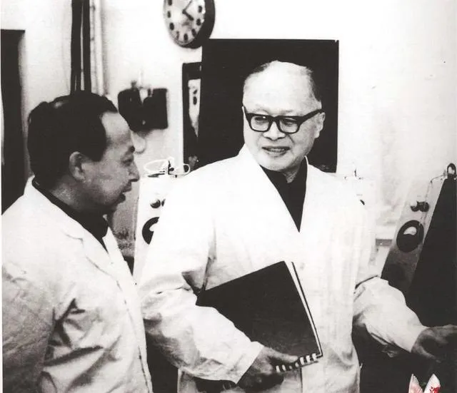 两位先生穿着白大褂,手里抱着黑皮本子,后墙上的挂钟指着九点多,器材像个圆肚子,管线盘成圈,笑容是轻轻的,像刚把一道难题摁住。爷爷拍着桌子说名字我熟,发报里常听,别问我具体咋做的,我只记得那阵子夜里灯都亮得更久,年轻人跟着做实验,眼睛里有光。