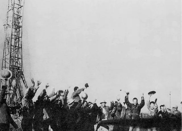 这张挥帽子的场面叫试油成功,钻塔像一支铁笔戳在天上,工人们围着喊,帽子飞起来像一群鸟,爸爸说那会儿从泥里抠油,鞋底抹得都是黑亮黑亮的油泥,现在油田上仪器成排,声音都换成了电子的滴答声。