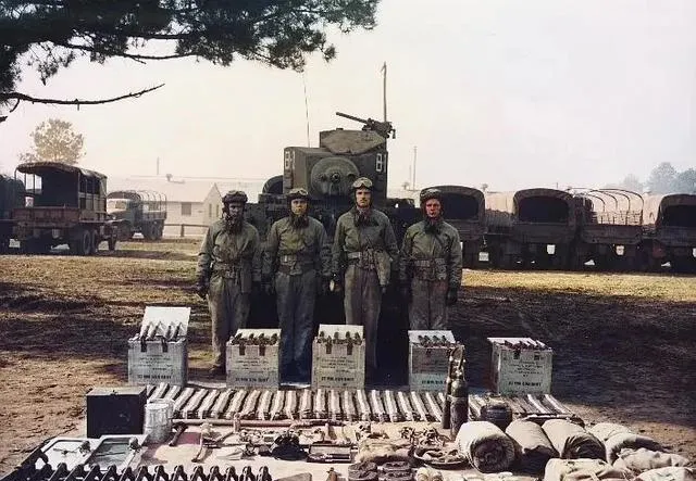 这辆铁疙瘩叫轻型坦克,前面列着成排弹箱和工具,四个兵站得直直的,脸上全是风霜的硬,外公说军械摆在地上就像一张账本,少一件都得查清楚,现在我们看战史档案,照片里的规矩一眼就懂。