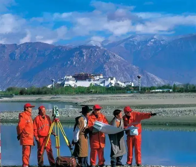 这套架子叫经纬仪,旁边红衣队员摊着图纸对着远山比划,远处的雪线清得发亮,风一吹旗子猎猎响,叔叔说修铁路先修心里那条线,点对点拉通了,铁轨才敢落地,现在导航一开就能到,背后的测量刻度却从来没偷过懒。
