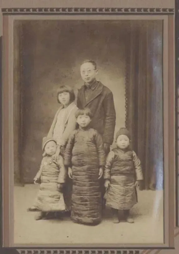 五舅十七岁的挺拔身姿,大姨十一岁的温婉眉眼,二姨七岁的娇憨神态,还有四姨(我们按大家族排序称照片里的姨)与舅舅懵懂的孩童模样,都被定格在这张布纹相纸上,历经九十年风雨而未曾褪色。