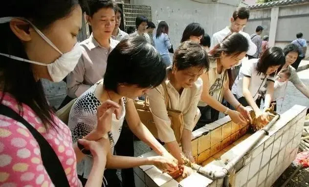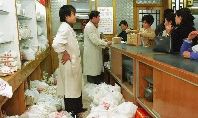 2003年4月9日,北京一家同仁堂药店中,人们购买据说可以预防非典的中药。在北京晚报报道了某中药可以预防非典后,这家药店一天之内卖光了三万副。