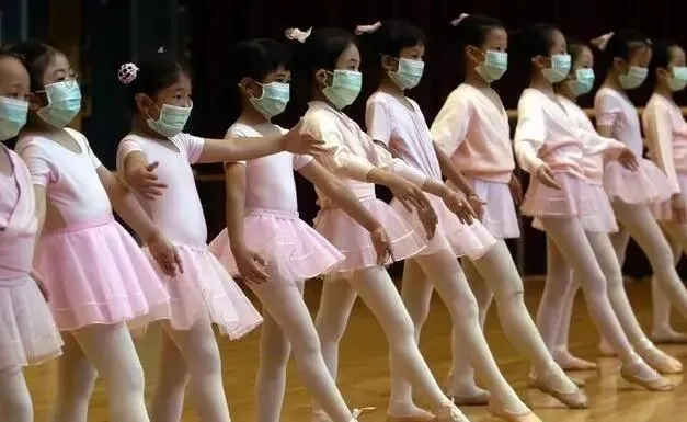 2003年4月27日,香港,参加芭蕾舞课程的孩子们戴着口罩练习舞蹈。Vincent Yu/摄。