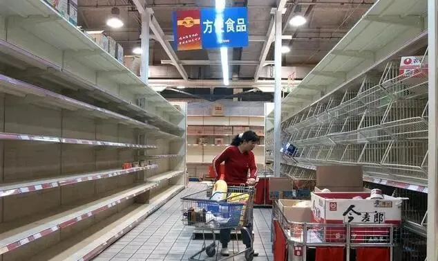 2003年5月6日,北京宣布四处为非典隔离区,市民开始抢购生活必须品。这家超市的货架已是空空如也。