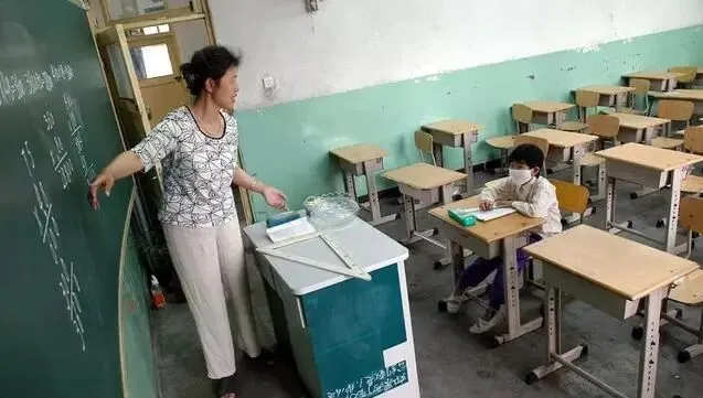 2003年5月29日,北京市西城区裕中小学一间教室内,老师为余玄上课。(潘松刚/摄)2003年4月23日,北京市宣布全市的中小学从24日起全面停课,确保疫情不会在校园扩散。玄因家境贫困,无法在家中收看空中课堂,学校就每天派人把她接到学校来看,老师还在课后为她一个人辅导。