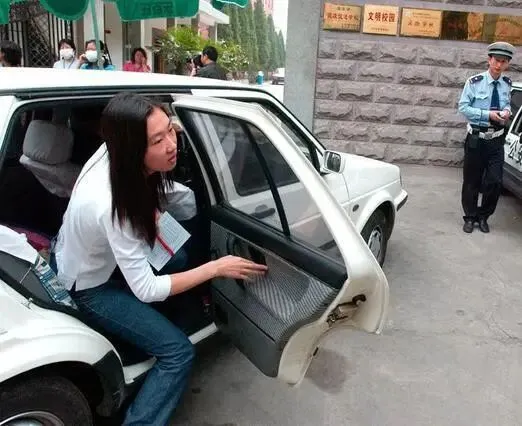 2003年6月8日,一辆专车将一名女考生送到北京154中学高考考点,该考点只有她一名考生。张炜/摄。这位考生所在的住宅楼发现一非典疑似患者且已死亡,全楼处于隔离中。高考时给她专门设置了一个考点。