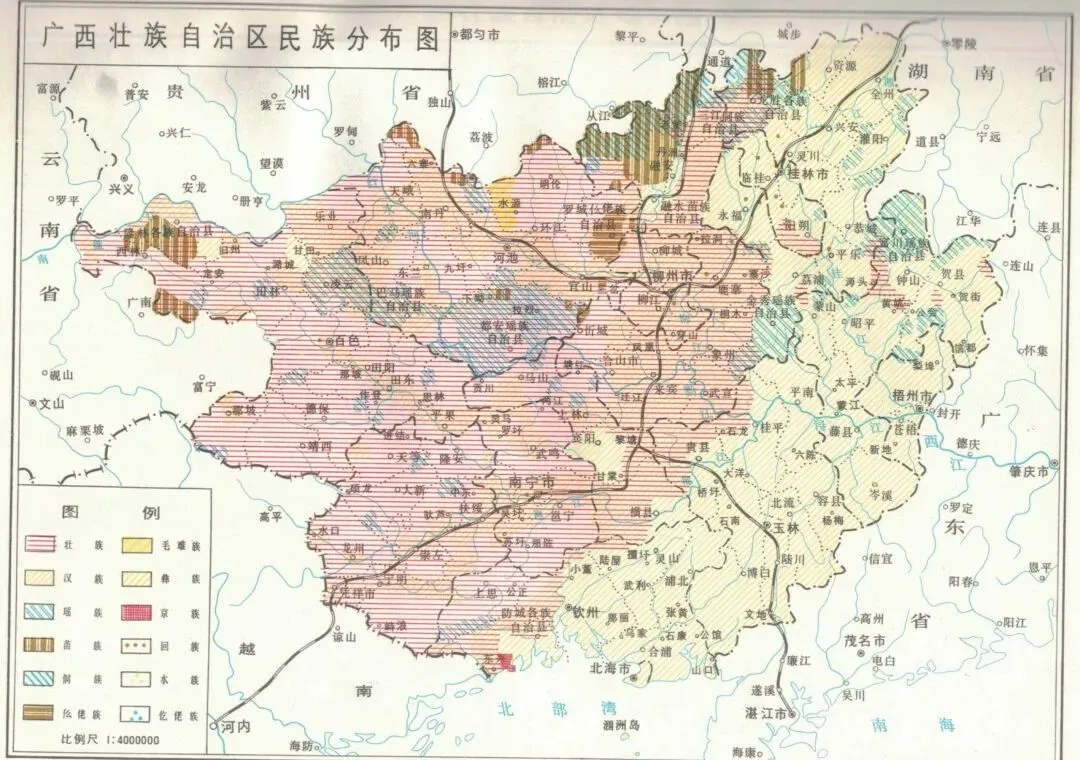 图2 1985年广西壮族自治区民族分布图