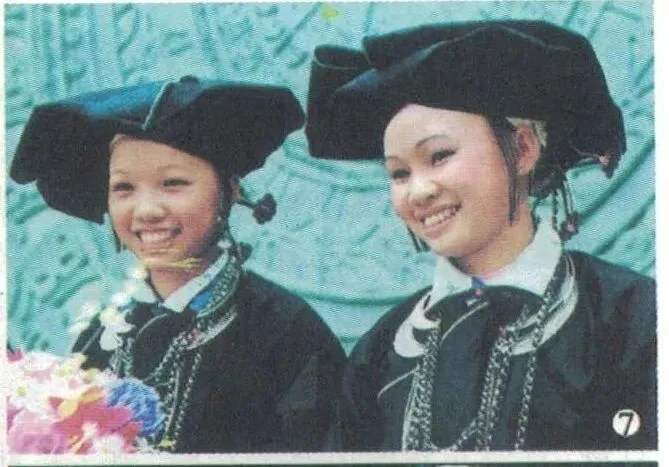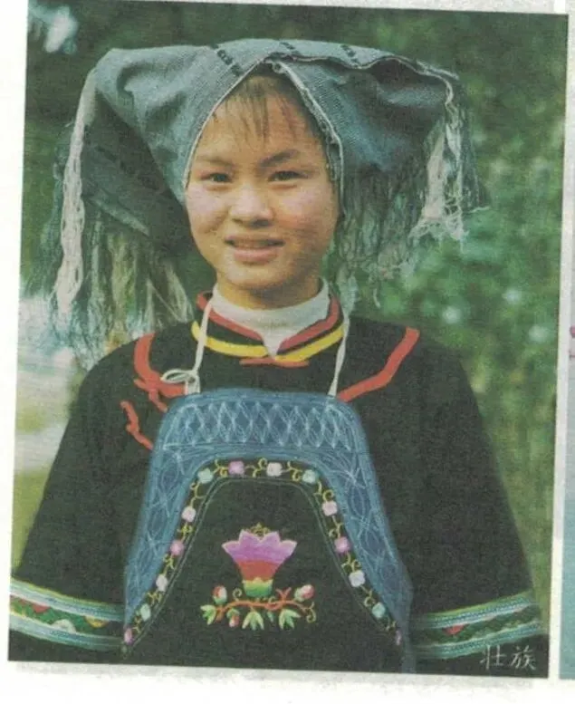 · 壮族:服饰崇尚青、黑色,女性多穿右衽或对襟上衣配宽脚裤或百褶裙。最经典的莫过于被誉为壮族文化“活化石”的黑衣壮。他们全身以黑为美,女子头戴黑布折成的“独角帽”,服饰上细密的绣花在深邃的黑色底色上熠熠生辉,神秘而庄重。